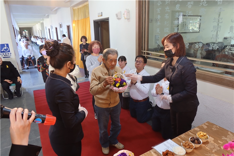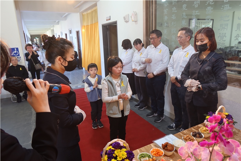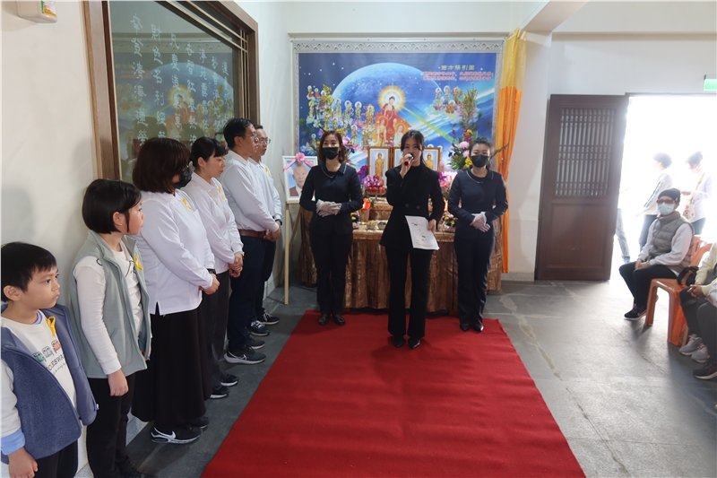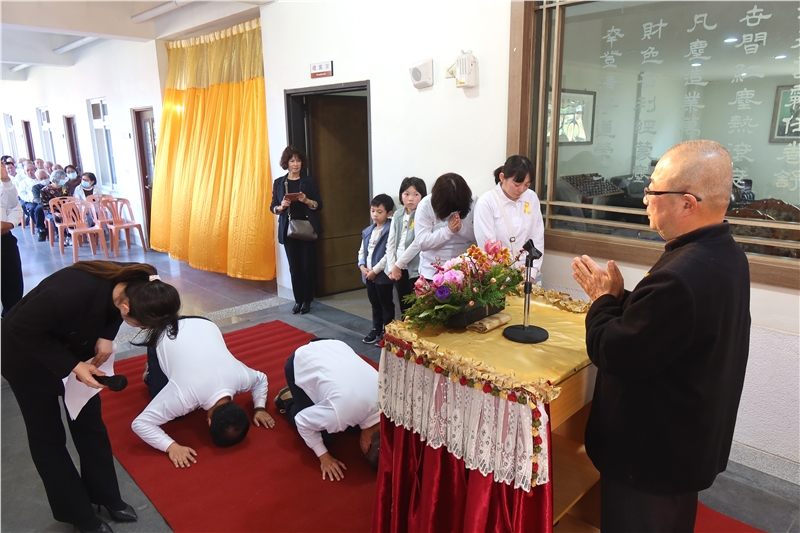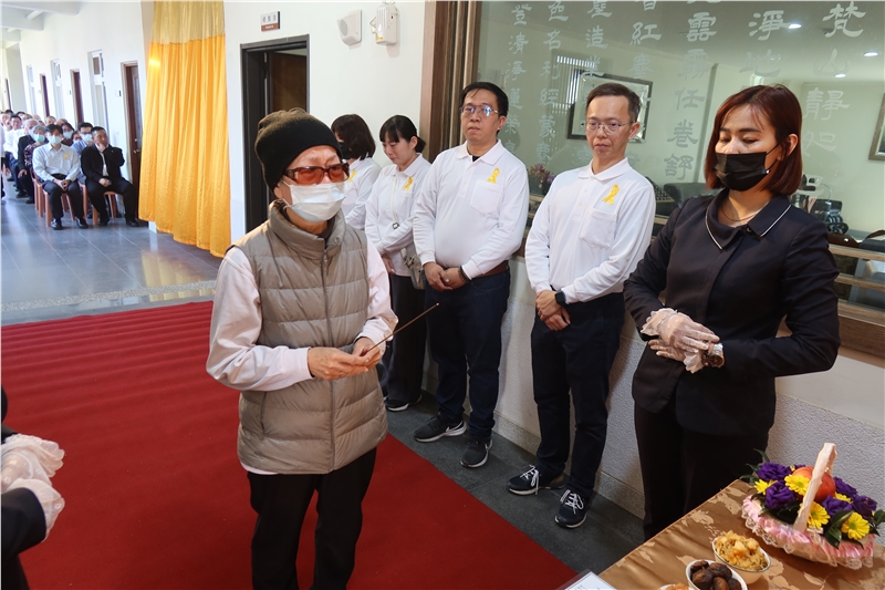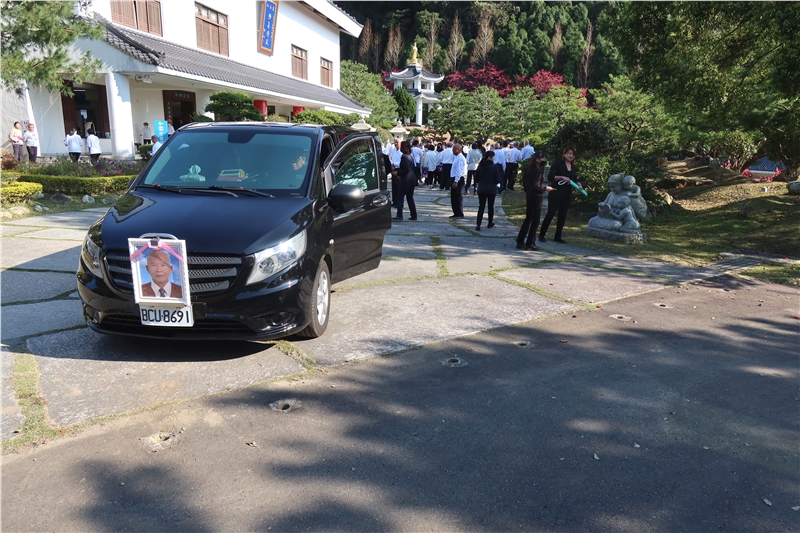 告別式儀軌、執事人員配置皆由苑長親自擘劃、解說與執行,依序由家奠、公奠、苑長開示、台中分苑代理班長張明宗同倫代表致詞、同參道友妙音同倫的致祭、唱頌彌陀聖號右繞蓮池三匝;在蓮臺山同倫端花列班護送下,起靈禮儀式首苑長高聲朗誦「阿彌陀佛宏願開,普渡眾生離苦海,三途六道離塵埃,接引占魁上蓮臺」、緊接著小喇叭吹奏安息號安魂後,鳴般若金鐘18響與佛號聲中,起靈引發火化。過程肅穆莊嚴,祥和圓滿。