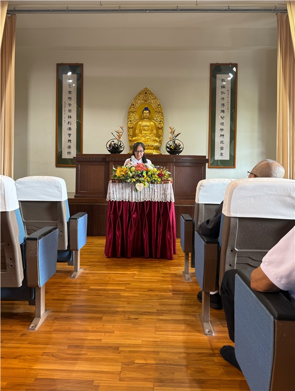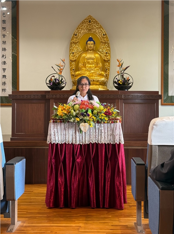 我是高雄分苑的學生,姓洪名叫月枝,很榮幸能參加114年的苑慶,感恩佛菩薩不離不棄,把我從紅塵苦海中渡上蓮臺山,安住在此一娑婆世間的淨土,和諸位學長一同在 苑長會下諦聽佛陀正法。