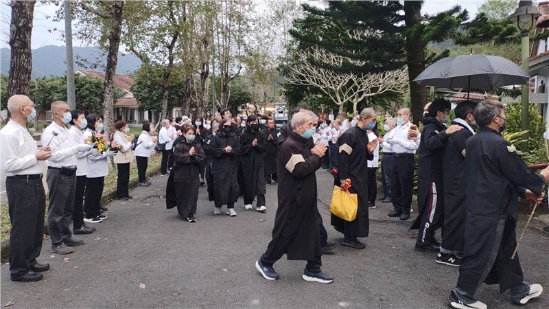 吳家一門,子女寶眷承其母慈子孝,侍奉慈母無不盡心盡力,家中男眾排行老三的清和班長更是善根福德深厚,追隨廖苑長近三十載,諦聽佛法,勤修淨業三福,內化於心,復能落實於生活,凡攸關蓮臺山諸事務,無不身先士卒,勇於荷擔如來家業,是為廖苑長口中的典範弟子,也是蓮臺山眾同倫心中的好樣。今親得離塵垢,子道方成就。眾於不捨聲中,無限祝福早日文成印壞,早日華開見佛。