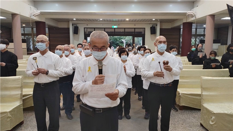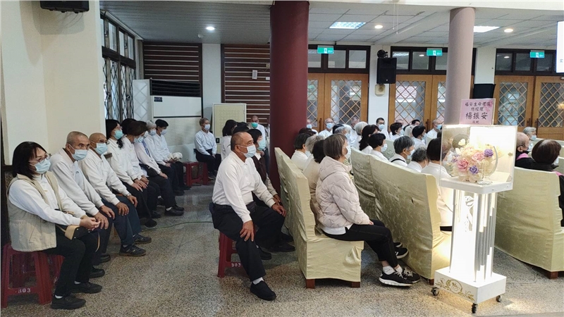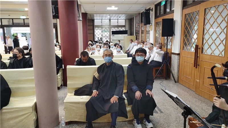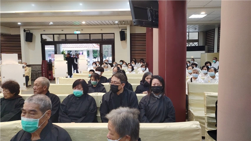 吳楊月英老同倫偕三子吳清和(蓮臺山梵碩乙班班長)同為廖苑長榮尉會下同倫,於2025年11月25日安詳捨報,享壽九十有六,12月4日在宜蘭舉行蓮池海會告別式,有來自高雄、台南各地妙音同倫70餘人分乘兩輛大型遊覽車前往參加,念佛禮讚,並以戒定真香、燈花果、護棺等送行隊伍助緣,莊嚴肅穆,功德圓滿。