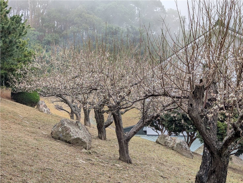 梅花上枝頭揭開蓮臺山花季序幕 【本苑訊】昔聞或唱“梅花!梅花!滿天下…”,今蓮臺山梅苑的梅花,在低溫攝氏10度左右的天候中,花苞累累,趨於滿開,予人驗證“越冷越開花”梅花性堅毅之美。 蓮臺山位於苗栗獅潭鄉大興窩山之巔,海拔有750公尺之高,俯瞰鄰近環繞大湖、公館鄉山形,確實有廖苑長榮尉於興立疏文中所載述「群山來朝妙蓮臺」之殊勝景象。換言之,位高障少,直接承受來自海面的風霜雨露,受鋒面強,故氣溫總是較之山下略低2-3度。 梅花性堅忍,象徵蓮臺山清修眾的道心永不退轉。冷冽的寒流來襲,梅花益發綻放;象徵修行人心不為紅塵所擾,反之,益發精進是因。梅花於散發撲鼻香之後,綠梅結實累累,終得豐盈果肉;表徵此間修行人必證菩提,是果。近年來跡象顯示,如是因如是果,情與無情同圓種智,修正因得正果。 本(2025)年歲暮,梅花一如往年如期開放,枝椏上朵朵白花,猶如皓雪白露點綴枝頭,蔚為風景,為蓮臺山花季揭開序幕,竭誠歡迎十方大德登臨,禮佛攬勝,洗滌心靈,好迎接丙午(2026)年新春的來臨。 教務處竭誠禮邀 2025/12/27 本文同步貼附於 蓮臺山臉書 https://www.facebook.com/permalink.php?story_fbid=pfbid0sQG8VXgiDWmMMMWBxwHB2WQYuCaeh3sUwHbmEPRBt1ctNCP3Jwnuhbig7o4Zz46sl&id=100057343094686